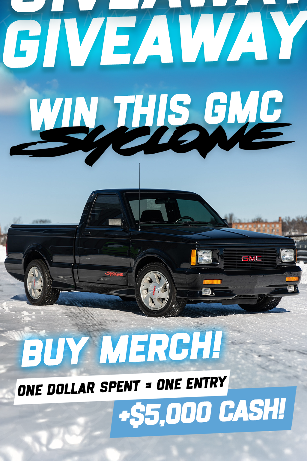 Syclone Giveaway Kit - 1Shirt & 2 Stickers plus 50 Entries to WIN plus 50 Entries to WIN The GMC Syclone & $5k