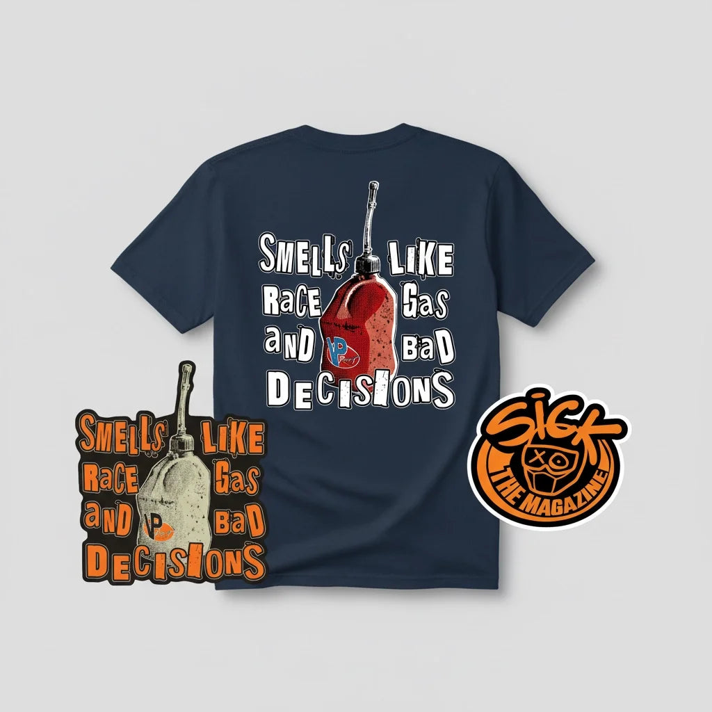 Bundle includes a Smells Like Race Gas & Bad Decisions Sticker and a 5x5 Sick The Mag Sticker. Plus 100 Entries!